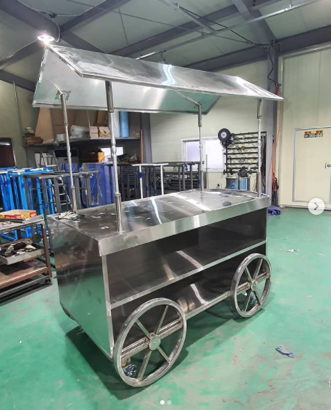 스텐레스로 만든 수레입니다. 도장후 예식장에서 차,과일등을 올려놓을 예정이라네요...